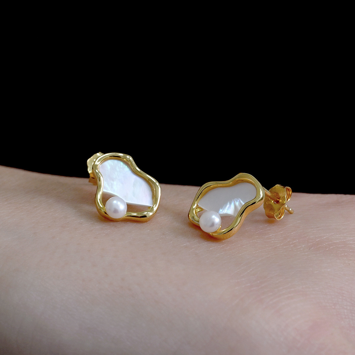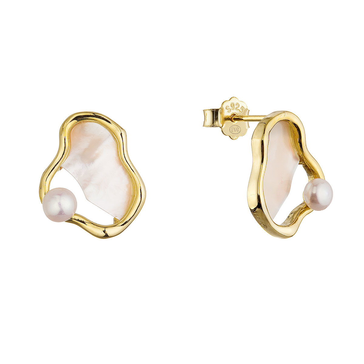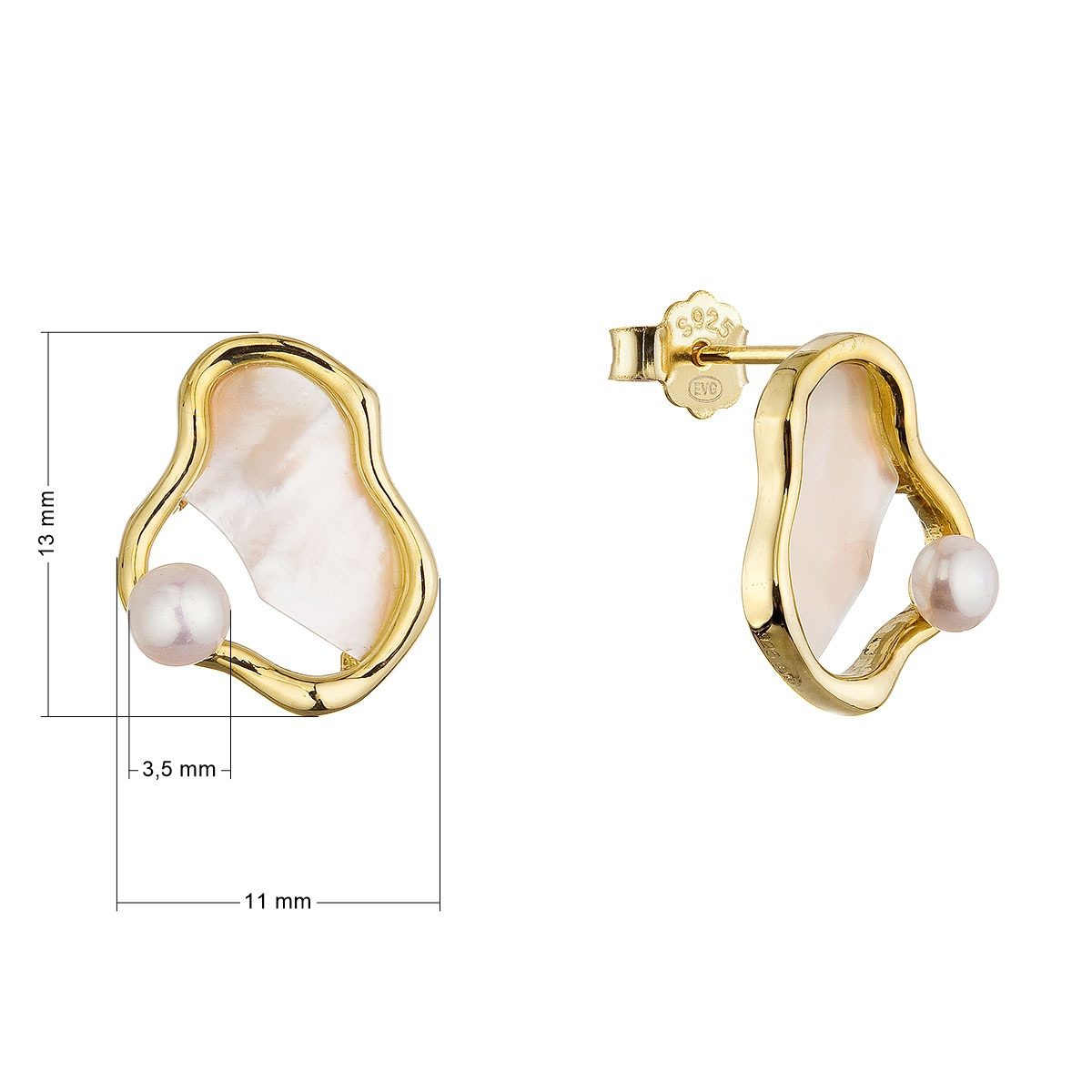 Pozlacené náušnice nepravidelného tvaru s říční perlou