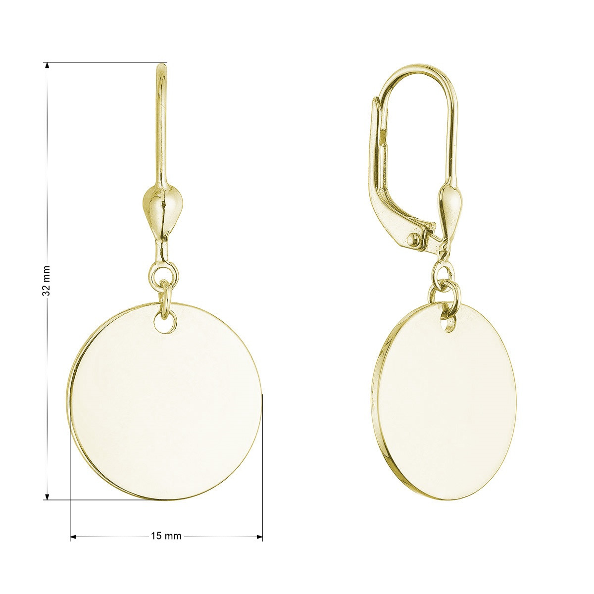Pozlacené stříbrné náušnice placičky