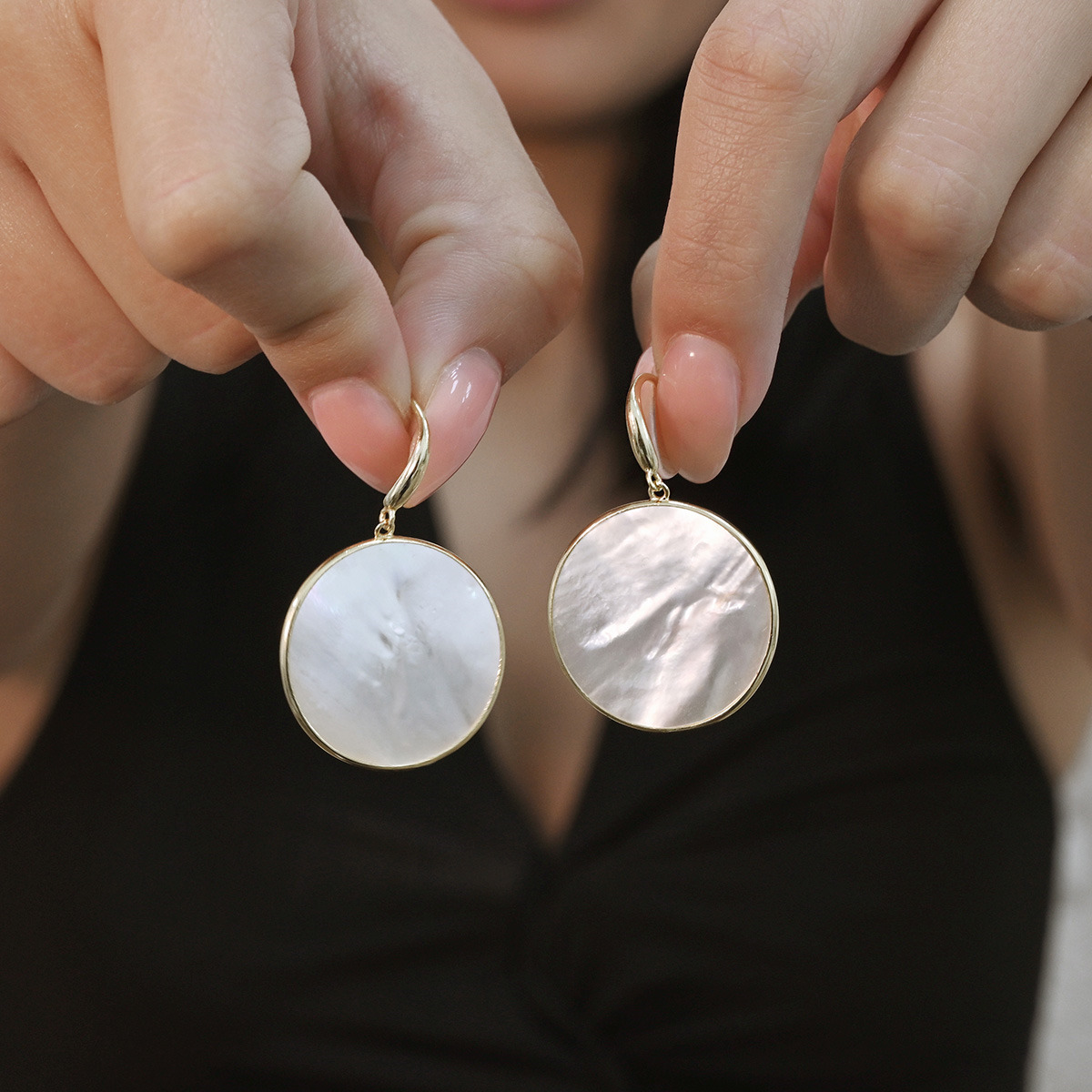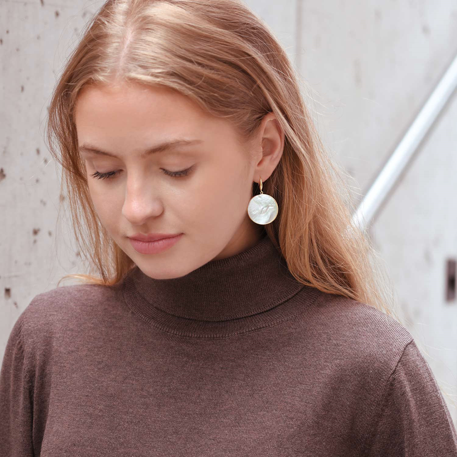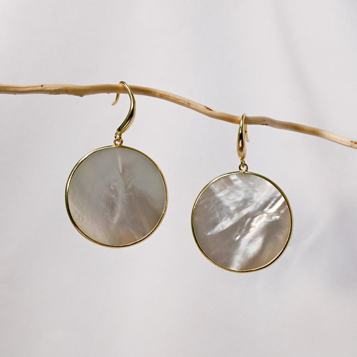 Pozlacené stříbrné náušnice větší kolečka s perletí