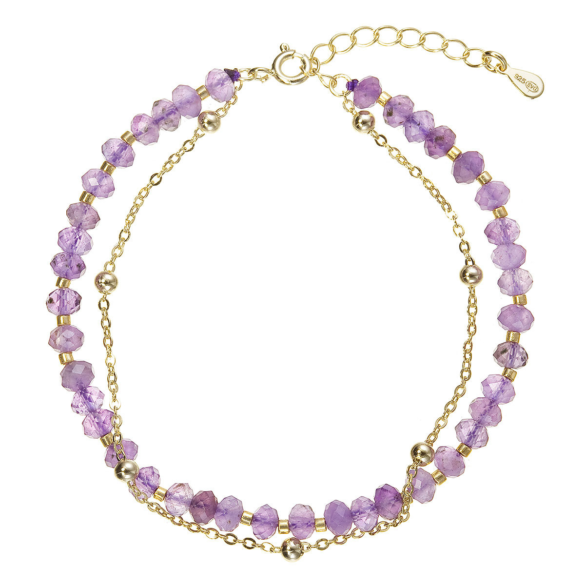 Pozlacený dvojitý náramek s ametysty