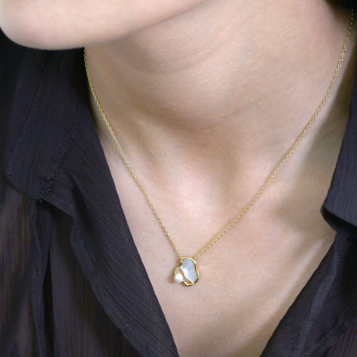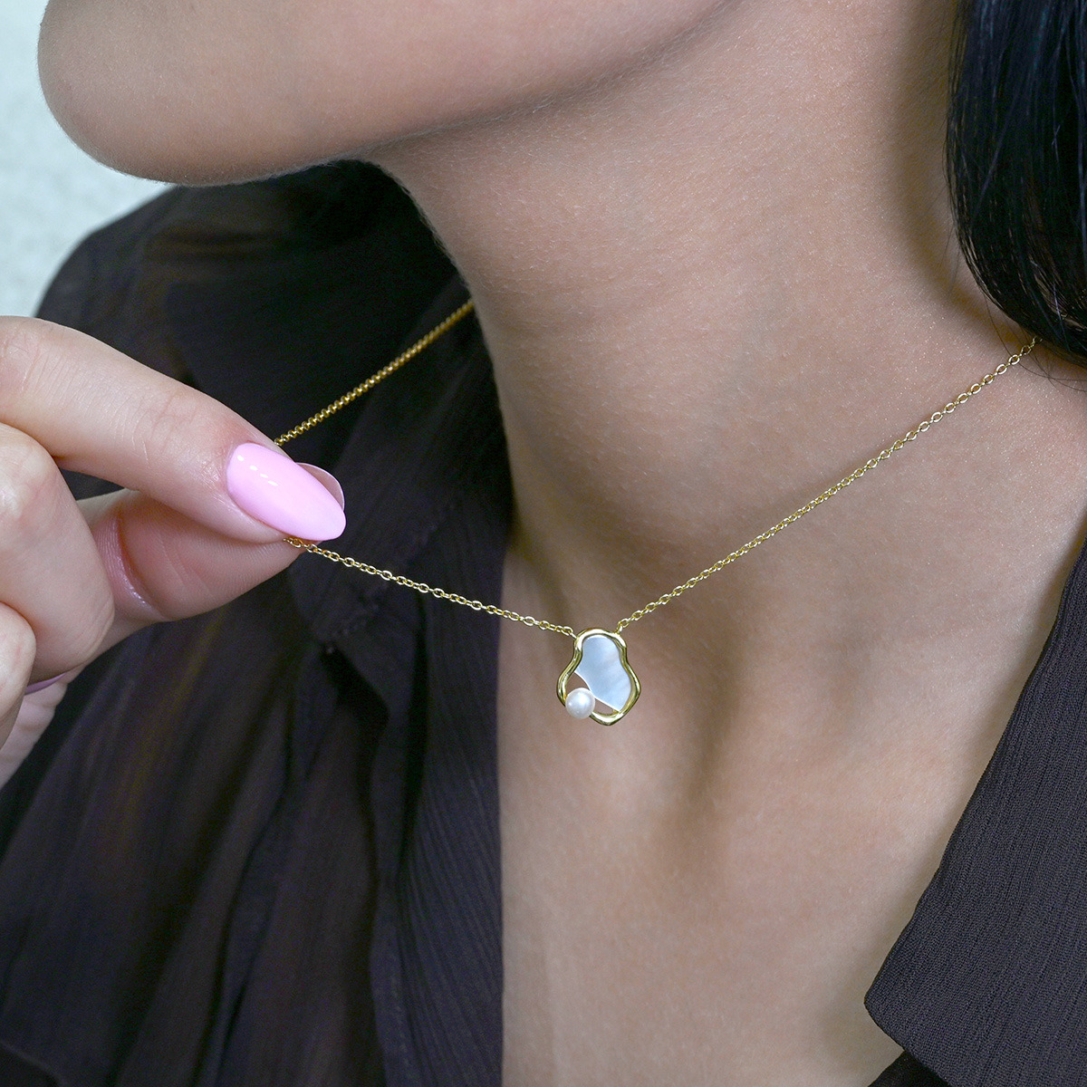 Náhrdelník je vyroben z pozlaceného stříbra ryzosti 925/1000, což zajišťuje jeho odolnost a trvanlivost. Perla o průměru 3,5-4 mm má kvalitu AA, což zaručuje její krásný lesk.