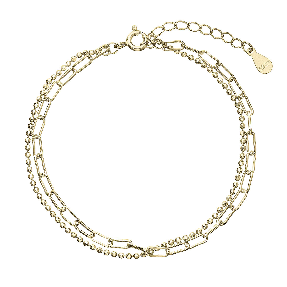 Pozlacený náramek dvojitý řetízek kuličky a oválky