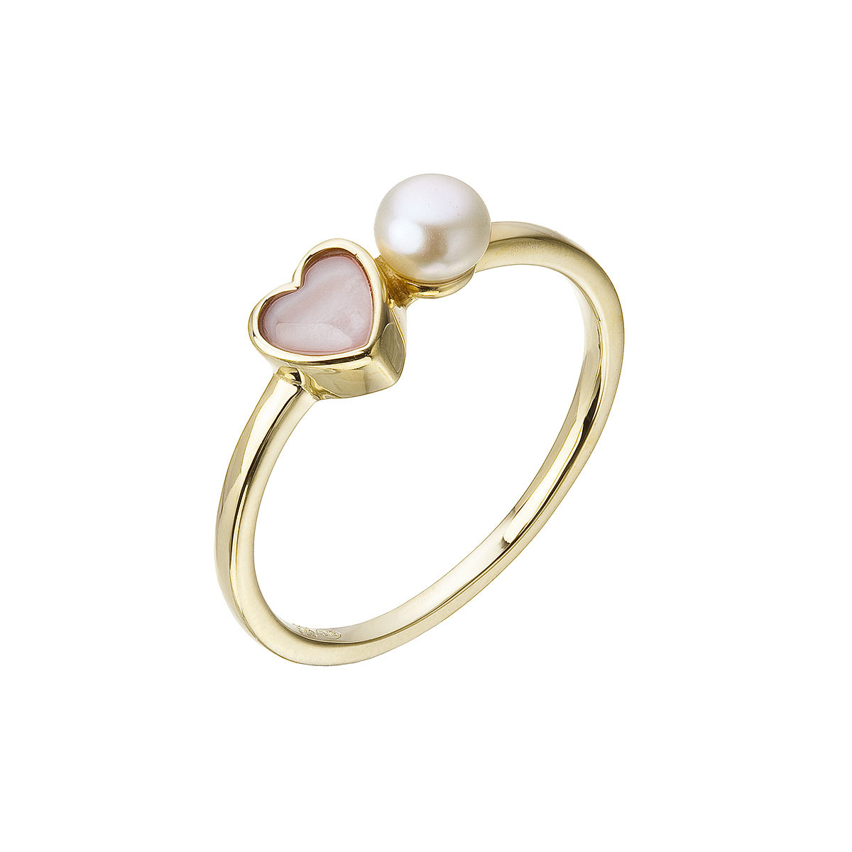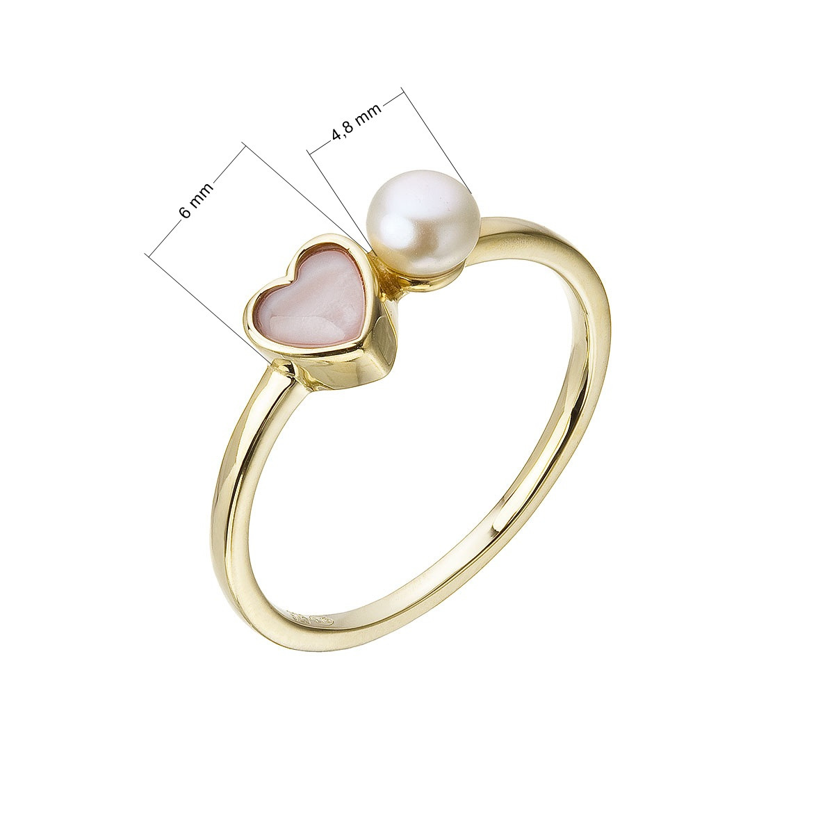 Pozlacený prsten s říční perlou a perleťovým srdcem