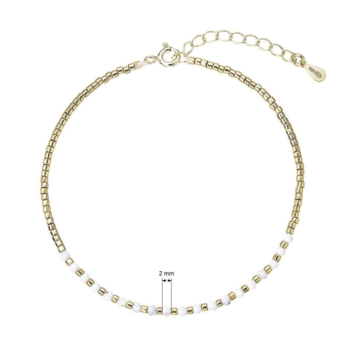 Tento jemný náramek je vyroben z kvalitního zlaceného stříbra a zdoben pravými howlity. Skládá se z drobounkých zlatých korálků, které tvoří větší část náramku. Elegantní lehká čistá krása zlatých korálků s bílými howlity.