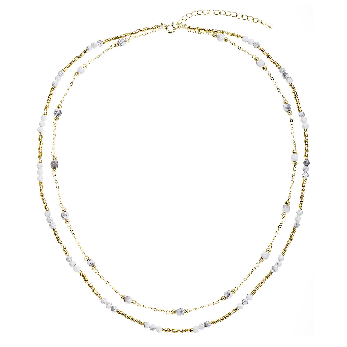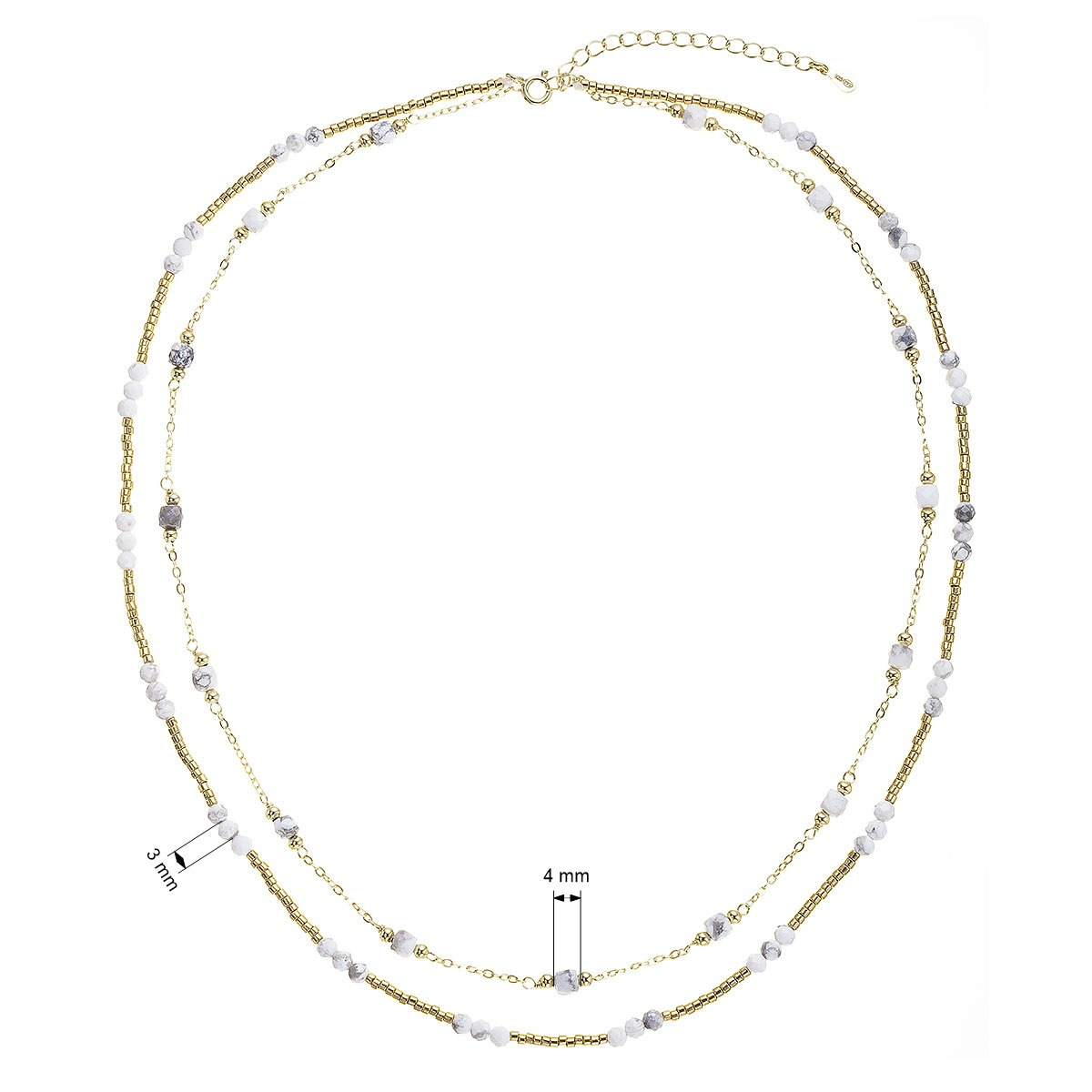 Okouzlující jemný dvouřadý náhrdelník s drobnými přírodními kamínky howlity působí lehce a elegantně.