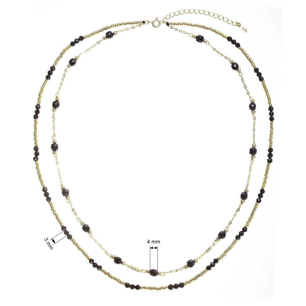 Okouzlující jemný dvouřadý náhrdelník s drobnými přírodními kamínky, černými spinely působí velmi elegantně.