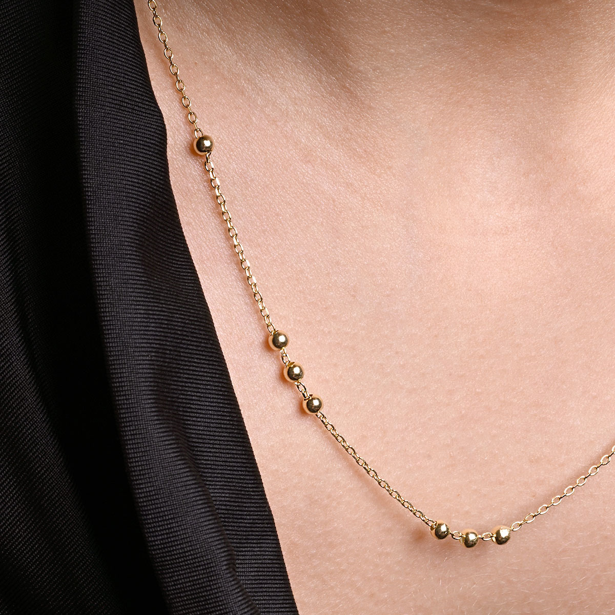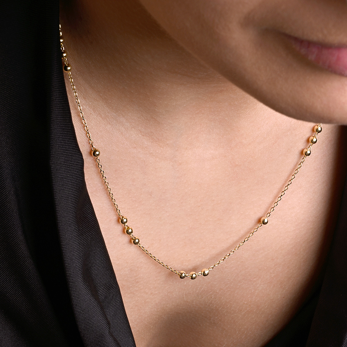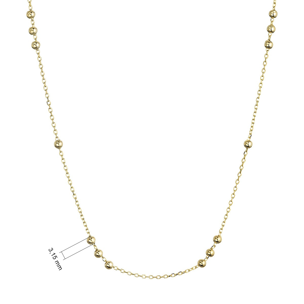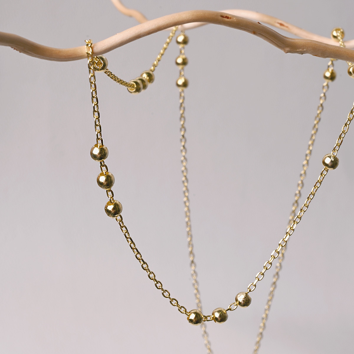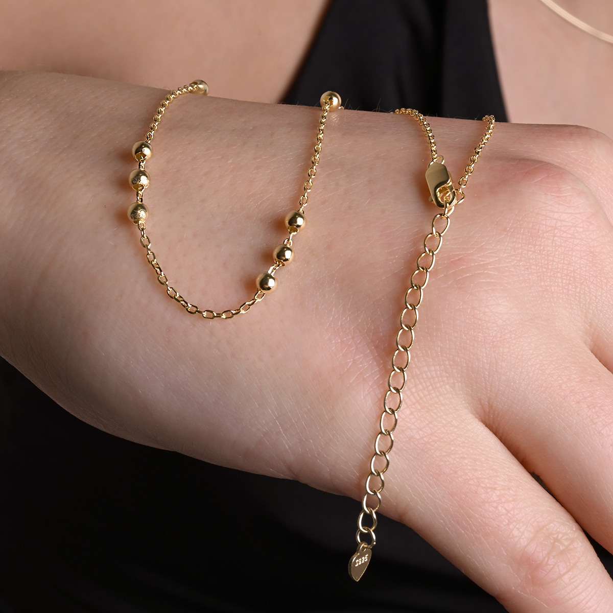 Pozlacený stříbrný řetízek dekorovaný ozdobnými kulličkami