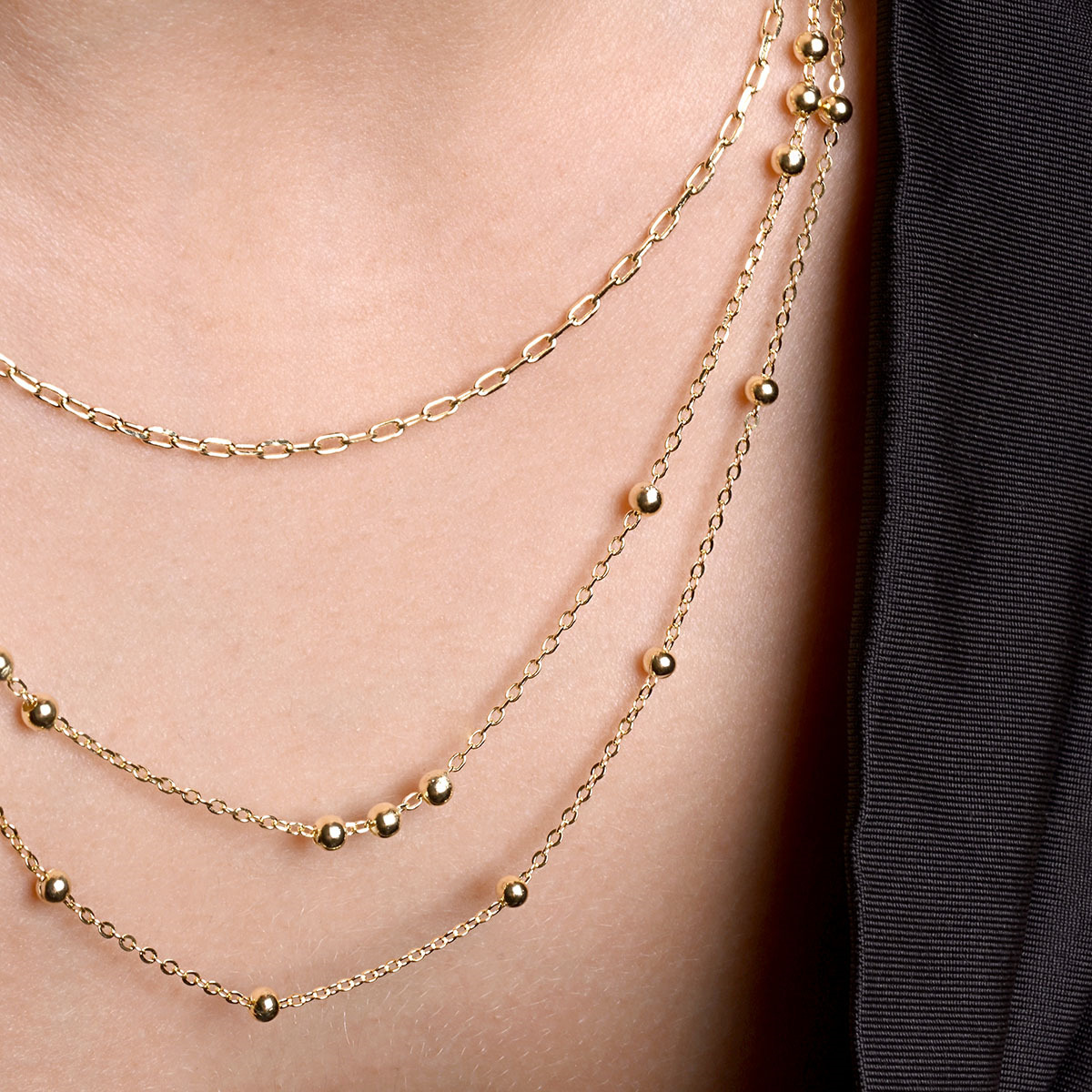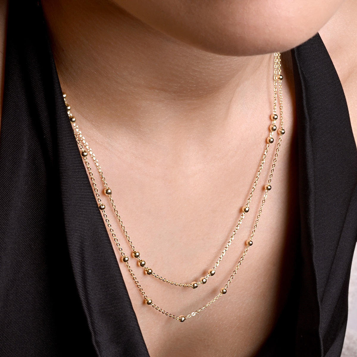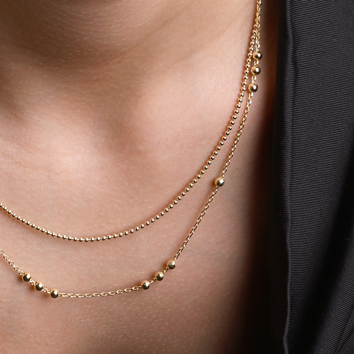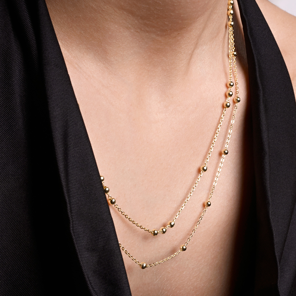 Pozlacený stříbrný řetízek dekorovaný ozdobnými kulličkami