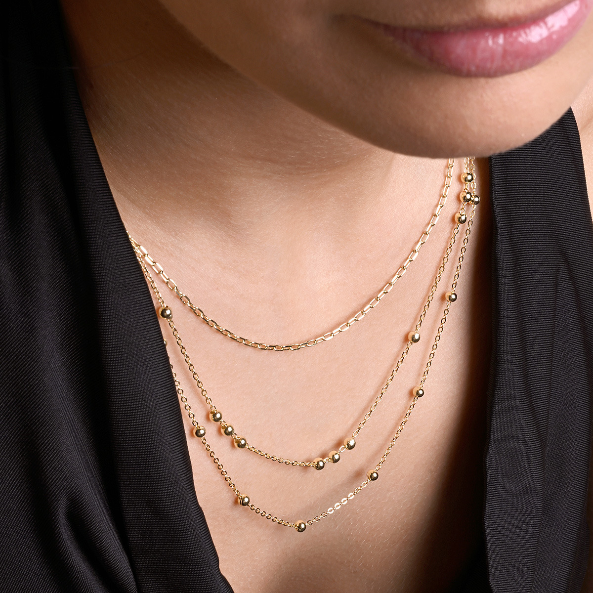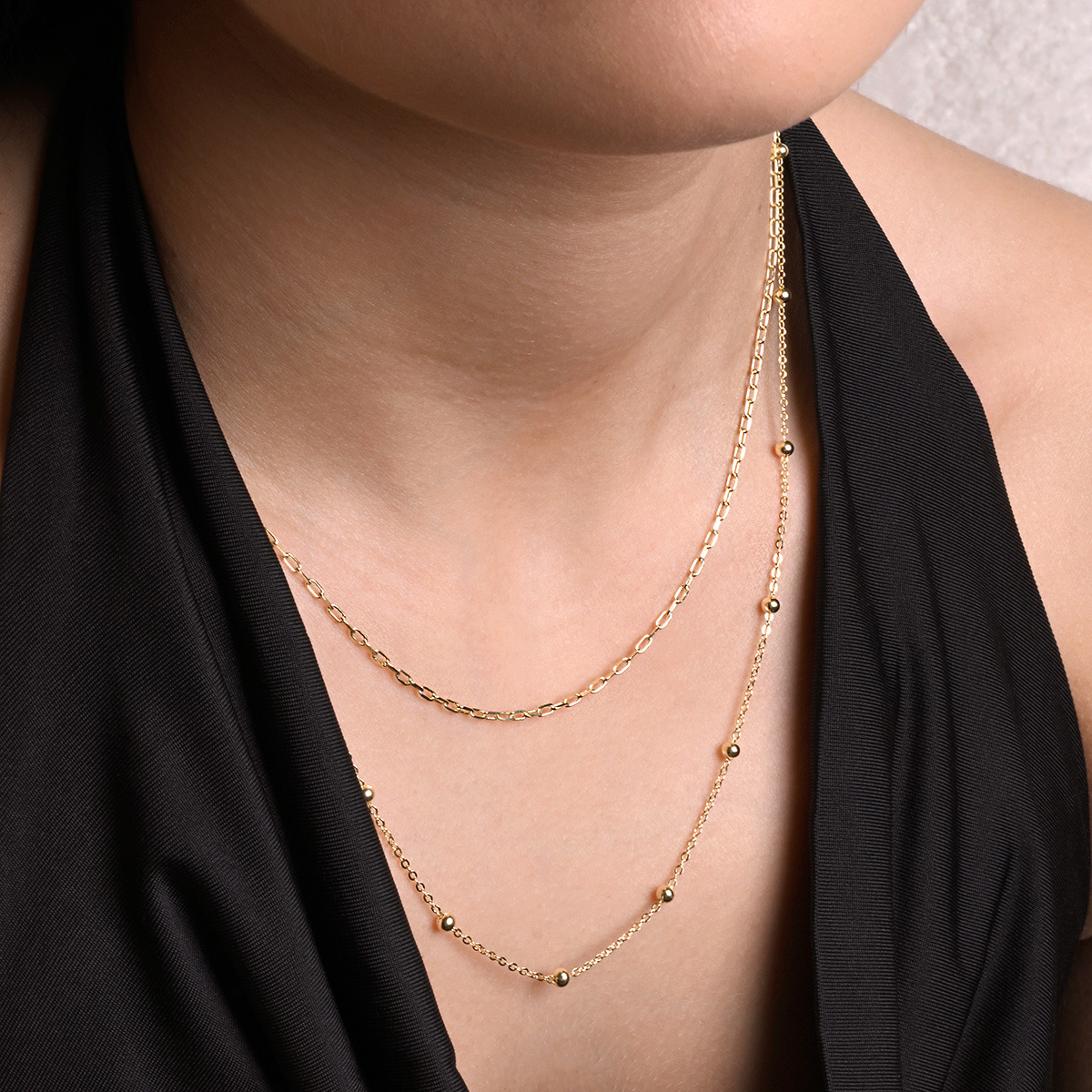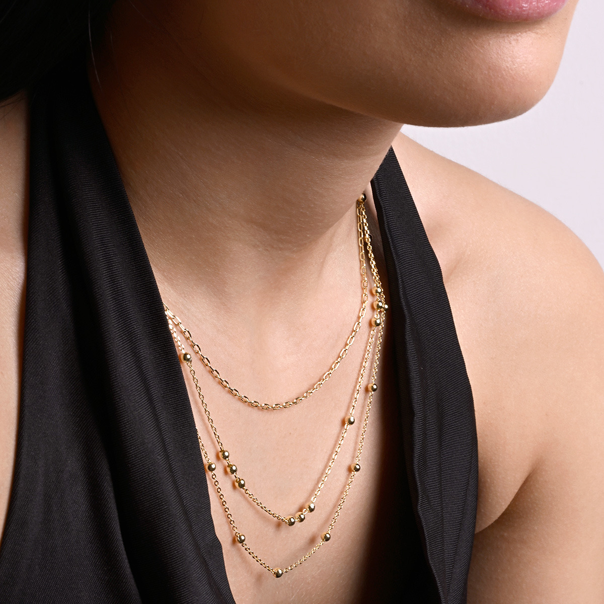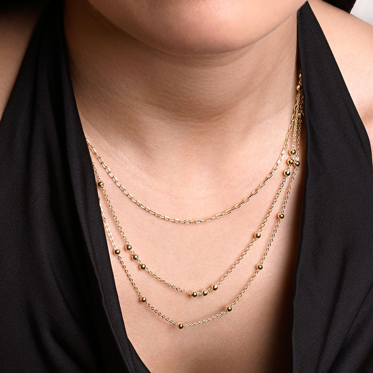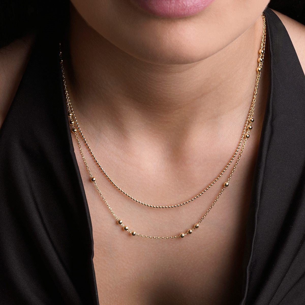 Pozlacený stříbrný řetízek dekorovaný ozdobnými kulličkami