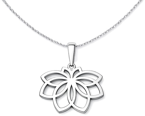Elegantní stříbrný přívěsek ve tvaru rozkvetlého lotosu představuje harmonii, nový začátek a duchovní sílu. Jemné, propojené linie vytvářejí lehký a nadčasový design, který působí něžně a přitom výrazně.