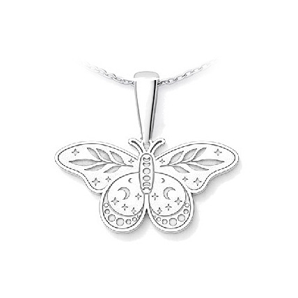 Jemný stříbrný přívěsek ve tvaru můry představuje tajemnou krásu noci, klid a tichou sílu vnitřní proměny. Detailně zdobená křídla dodávají šperku lehkost a elegantní hloubku.