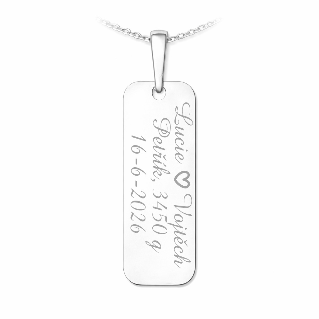 Zadní stranu přívěsku lze zakázkově doplnit rytinou vlastního textu.