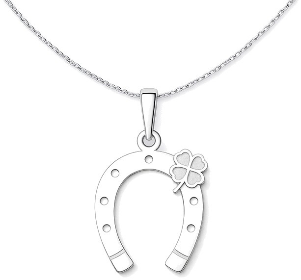 Jemný stříbrný přívěsek spojuje tradiční symboly štěstí – podkovu a čtyřlístek. Lehký a elegantní design působí nadčasově a hodí se pro každodenní nošení i jako osobní talisman, který připomíná pozitivní energii a víru v dobré věci.