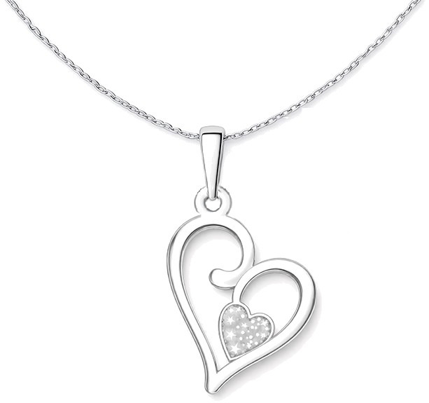 Jemný stříbrný přívěsek ve tvaru dvou propojených srdcí vyjadřuje hluboké pouto, vzájemnost a blízkost dvou duší. Elegantní linie působí lehce a romanticky, zatímco třpytivé srdíčko uprostřed dodává šperku něžný a luxusní detail.