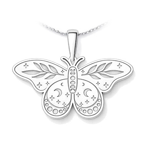 Jemný stříbrný přívěsek ve tvaru můry představuje tajemnou krásu noci, klid a tichou sílu vnitřní proměny. Detailně zdobená křídla dodávají šperku lehkost a elegantní hloubku.