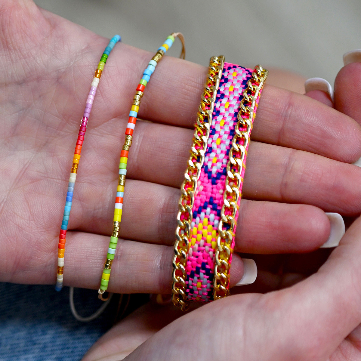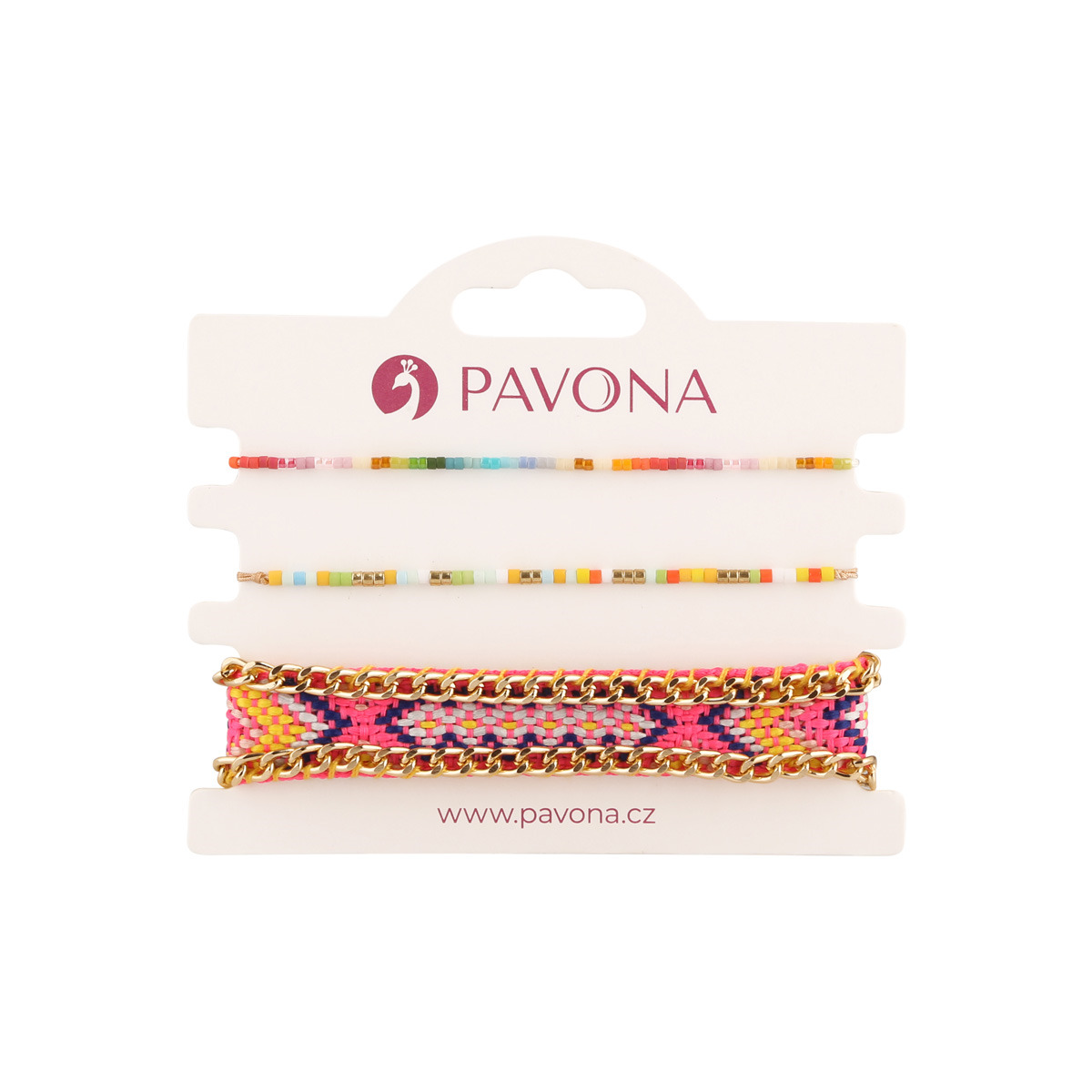 Sada 3 barevných náramků — tři originální kousky, které spolu nádherně ladí. Každý náramek je vzhledově jiný, můžete je nosit dohromady pro výrazný look nebo jednotlivě podle nálady a outfitu. Ideální doplněk, který oživí každý outfit.