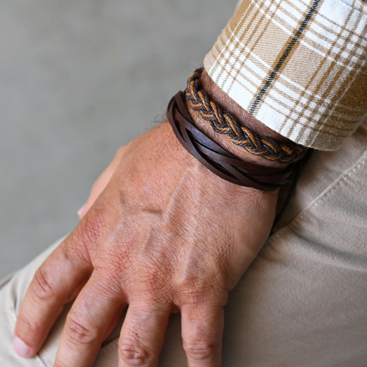 Sada 2 náramků — dva originální kousky, které spolu nádherně ladí. Každý náramek je vzhledově jiný, můžete je nosit dohromady pro výrazný look nebo jednotlivě podle nálady a outfitu. Ideální doplněk, který oživí každý outfit.