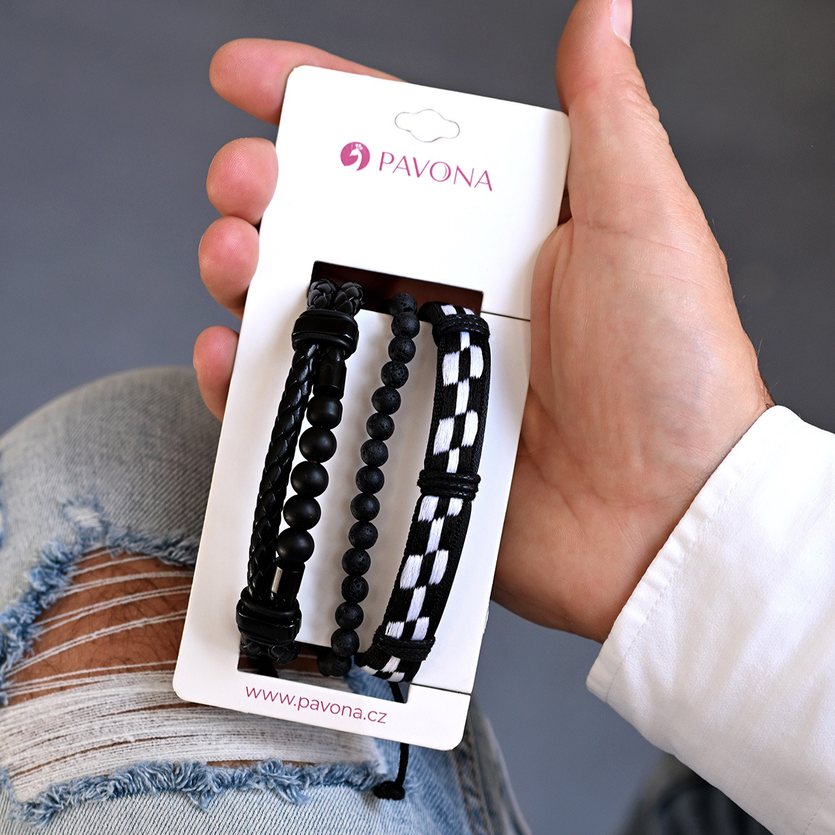 Sada 3 náramků — tři originální kousky, které spolu nádherně ladí. Každý náramek je vzhledově jiný, můžete je nosit dohromady pro výrazný look nebo jednotlivě podle nálady a outfitu. Ideální doplněk, který oživí každý outfit.