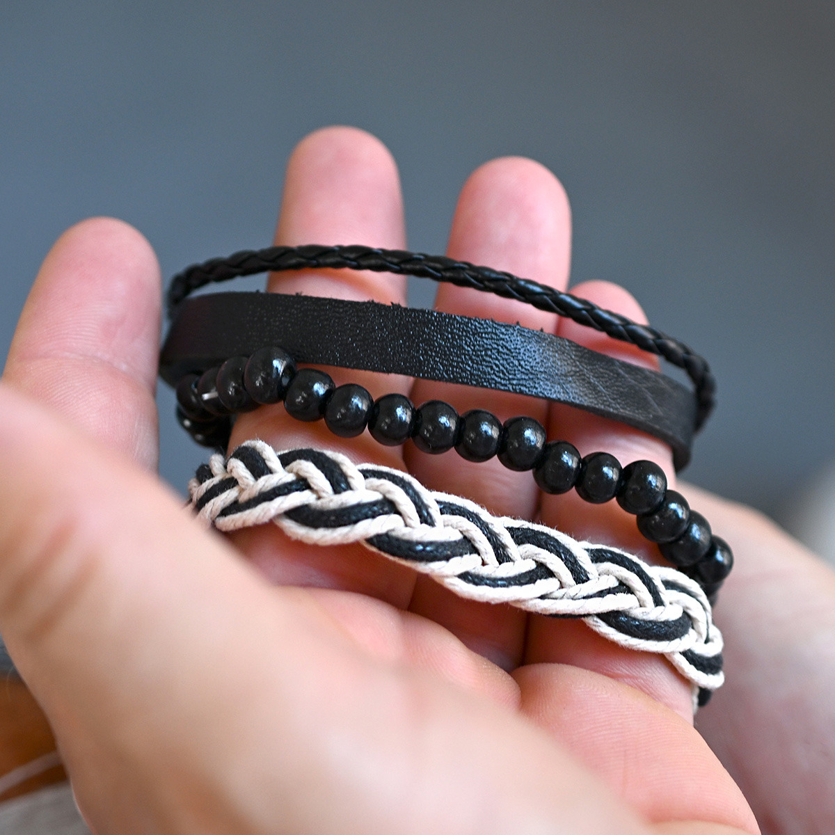 Sada 2 náramků — dva originální kousky, které spolu nádherně ladí. Každý náramek je vzhledově jiný, můžete je nosit dohromady pro výrazný look nebo jednotlivě podle nálady a outfitu. Ideální doplněk, který oživí každý outfit.
