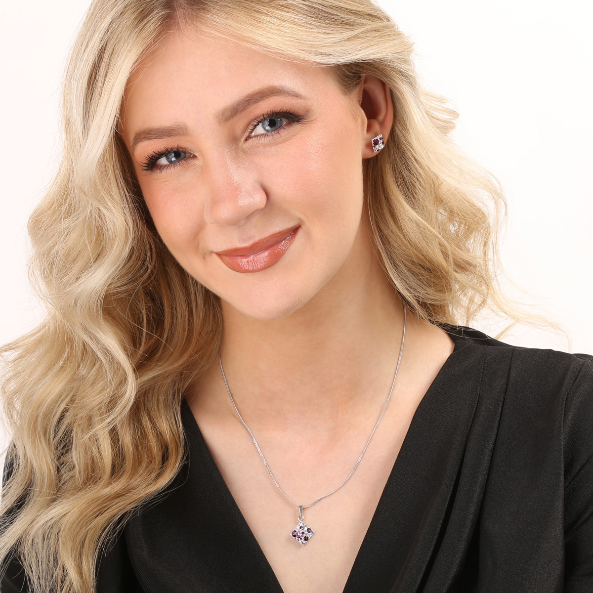 Sada šperků obsahuje náušnice pecky a řetízek s přívěskem. Šperky jsou ve tvaru kosočtverce a jsou vyrobeny ze stříbra ryzosti 925/1000, které prošlo povrchovou úpravou rhodiem. Rhodium chrání šperk proti zčernání, zežloutnutí i poškrábání. Přívěšek i náušnice jsou bohatě zdobeny třpytivými Swarovski krystaly v různých barvách. Náušnice mají zapínání na balónek. Jelikož šperky neobsahuji žádný přídavek niklu, mohou je bez obav nosit i alergici.
