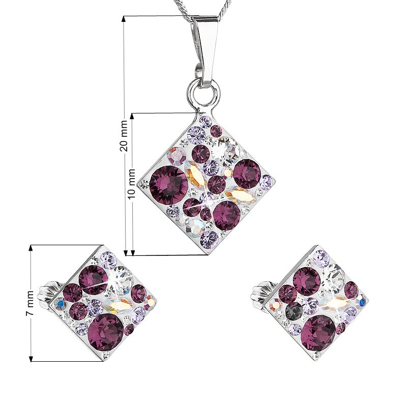 Parametry sady šperků s krystaly Swarovski náušnice, řetízek a přívěsek fialový kosočtverec amethyst