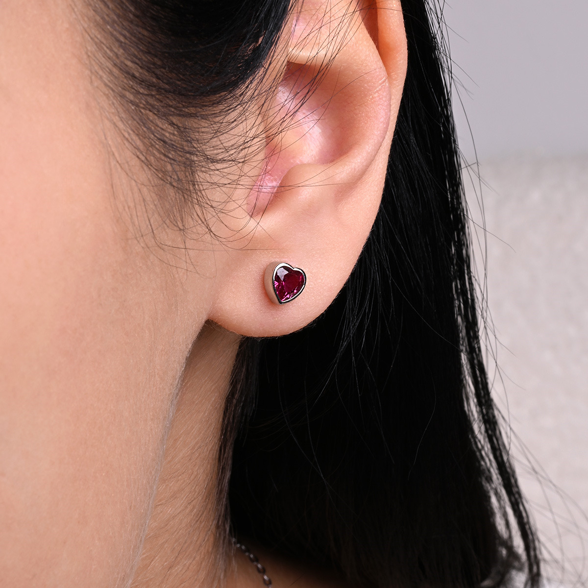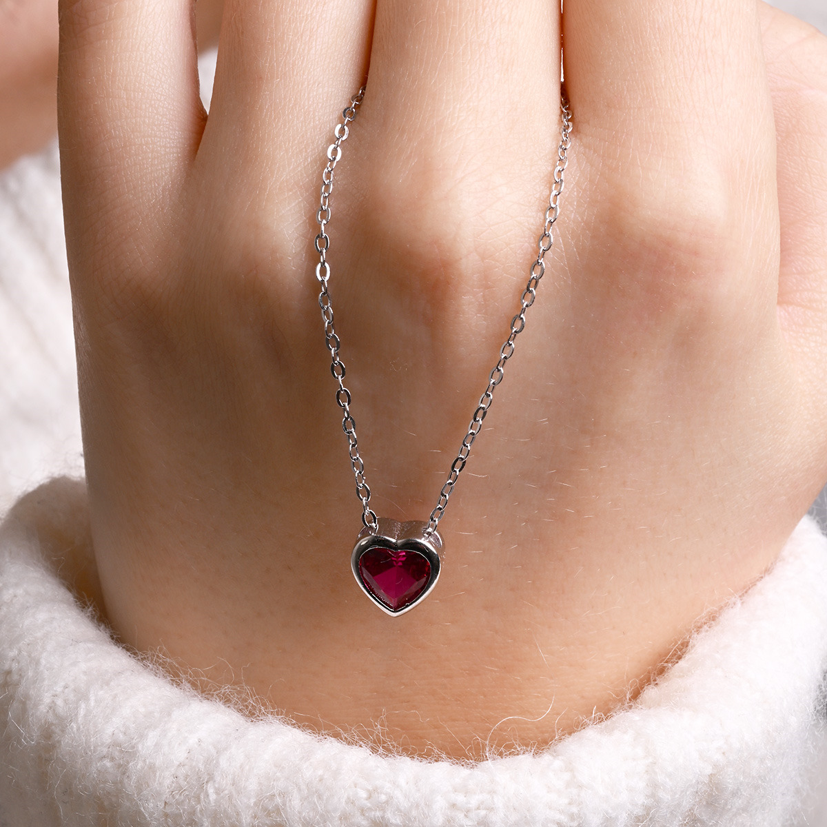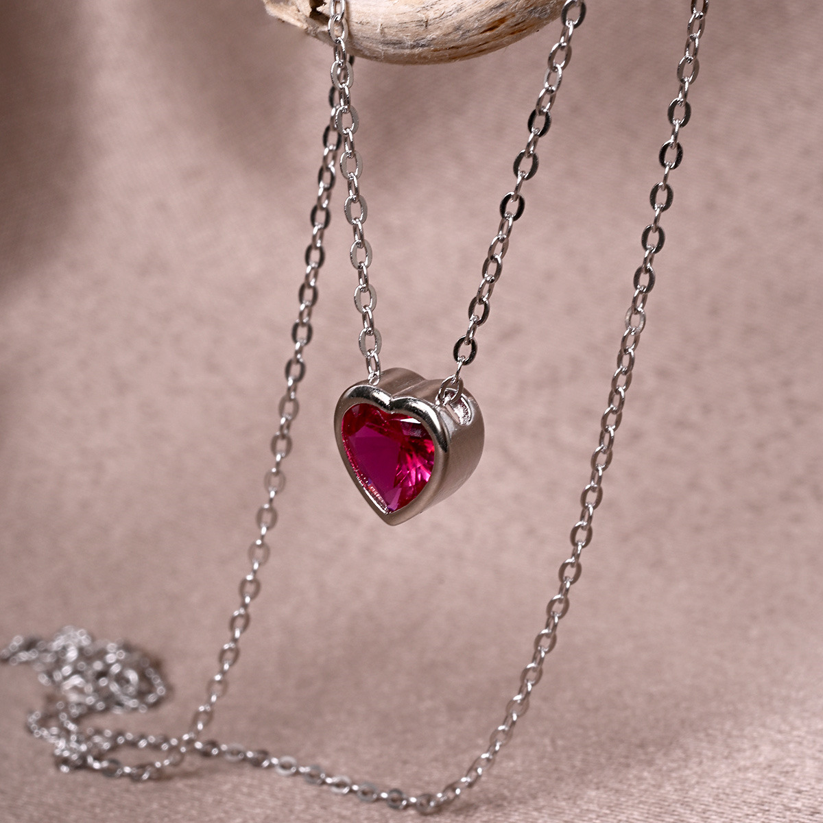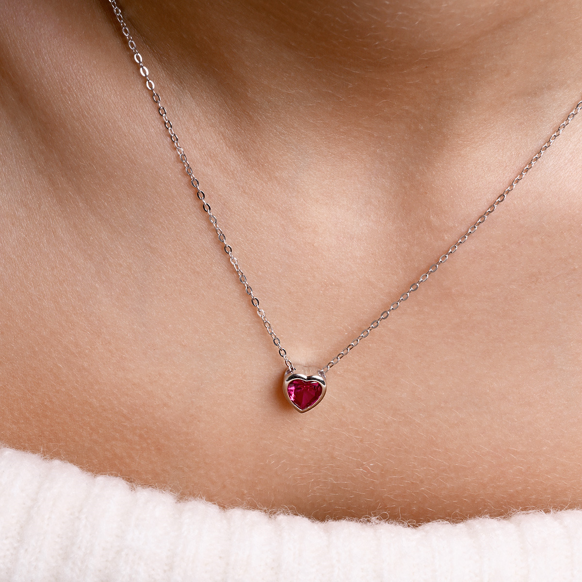 Sada stříbrných šperků, dekorovaných tmavě růžovými zirkony ve tvaru srdce