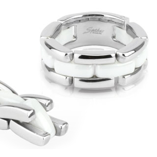 Prsten vyrobený v kombivaci leské chirurgické oceli a bílé keramiky