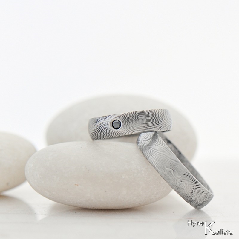 Snubní prsteny Damasteel černý diamant 1.5mm - pár