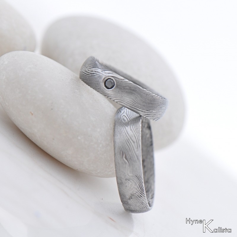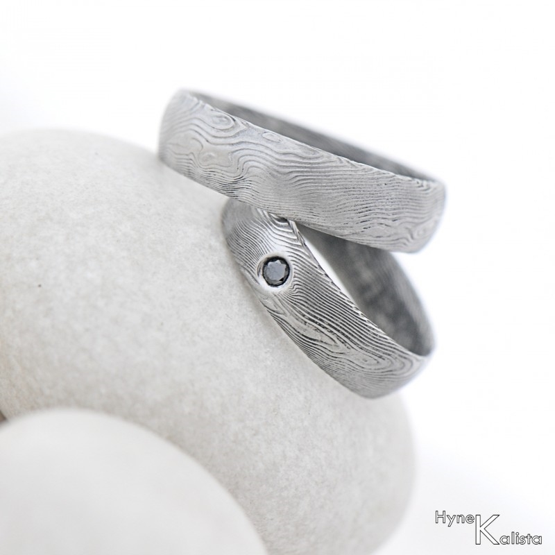 Snubní prsteny Damasteel černý diamant 2.3mm - pár