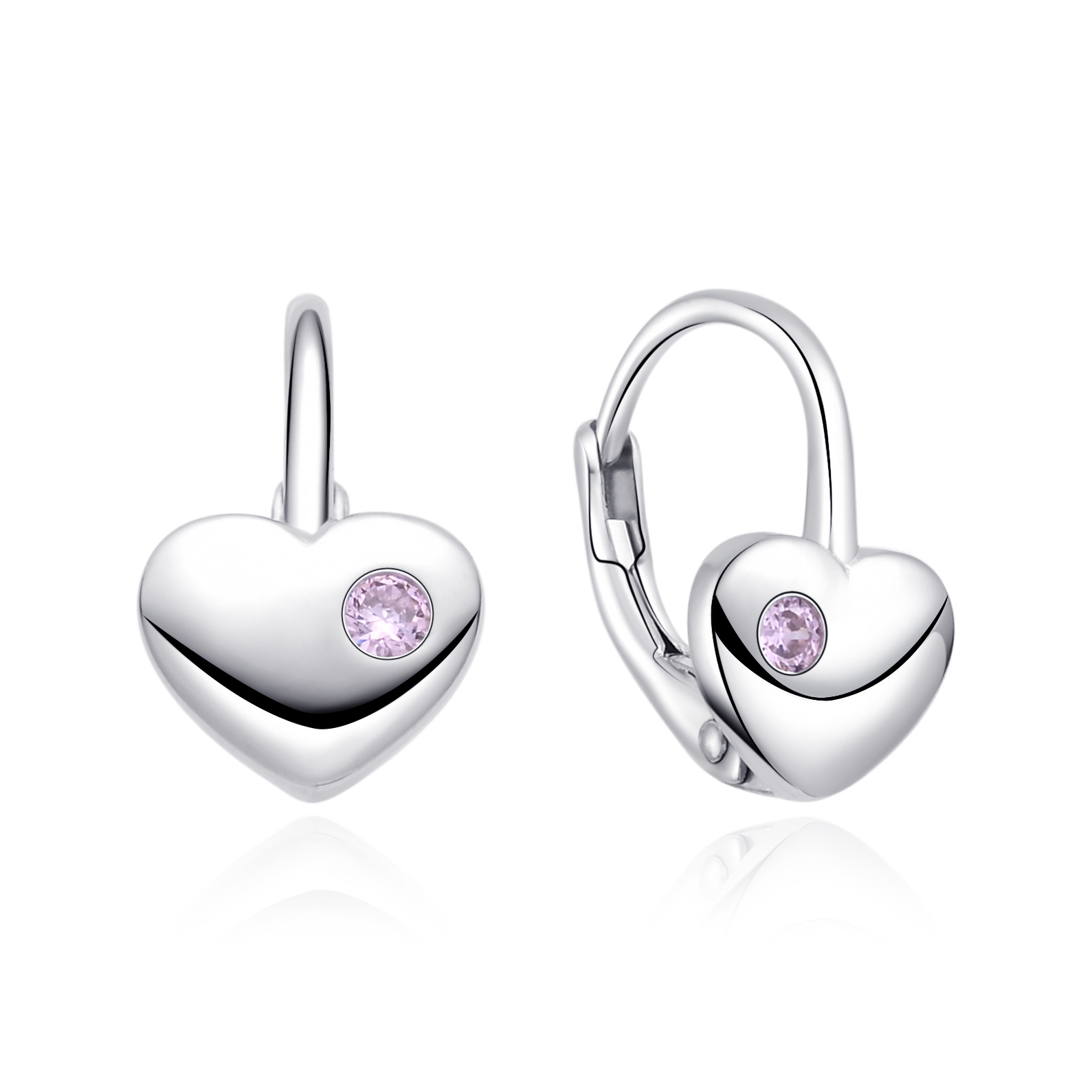 Náušnice ze stříbra s jakostním označením 925/1000 povrchově upravené rhodiováním. Náušnice jsou ve tvaru srdíček  zdobí je zirkon.