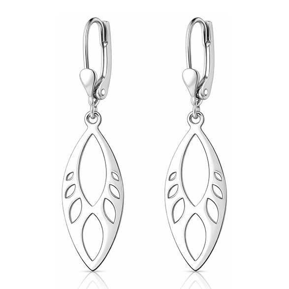 Jemné stříbrné náušnice v protáhlém tvaru kapky představují harmonii čistých linií a moderního designu. Otevřený vzor s decentními výřezy dodává šperku vzdušnost a jemný třpyt při každém pohybu.