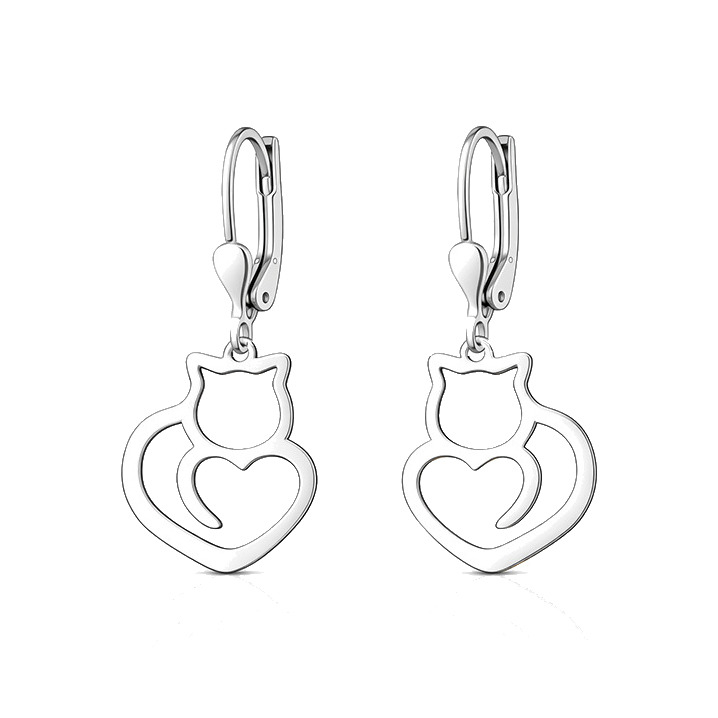 🐱❤?Stříbrné náušnice Kočka v srdci – symbol něhy a harmonie