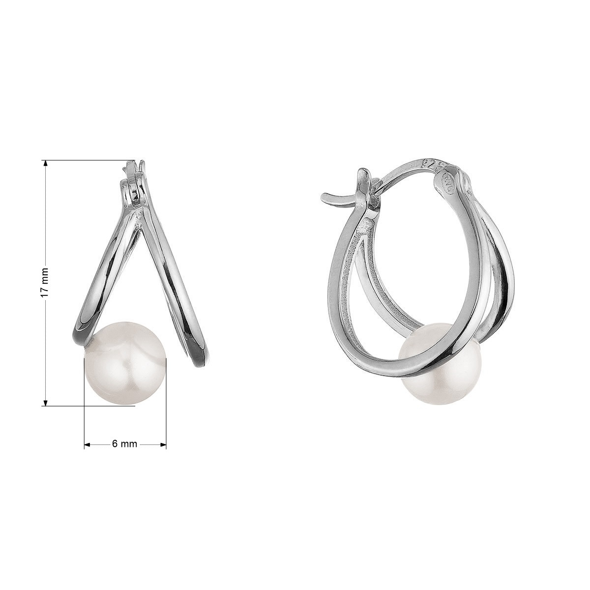 Stříbrné náušnice kruhy s bílou říční perlou spojují klasickou krásu s moderním designem. Jemně tvarované kruhy obklopují perlu, která září čistotou.