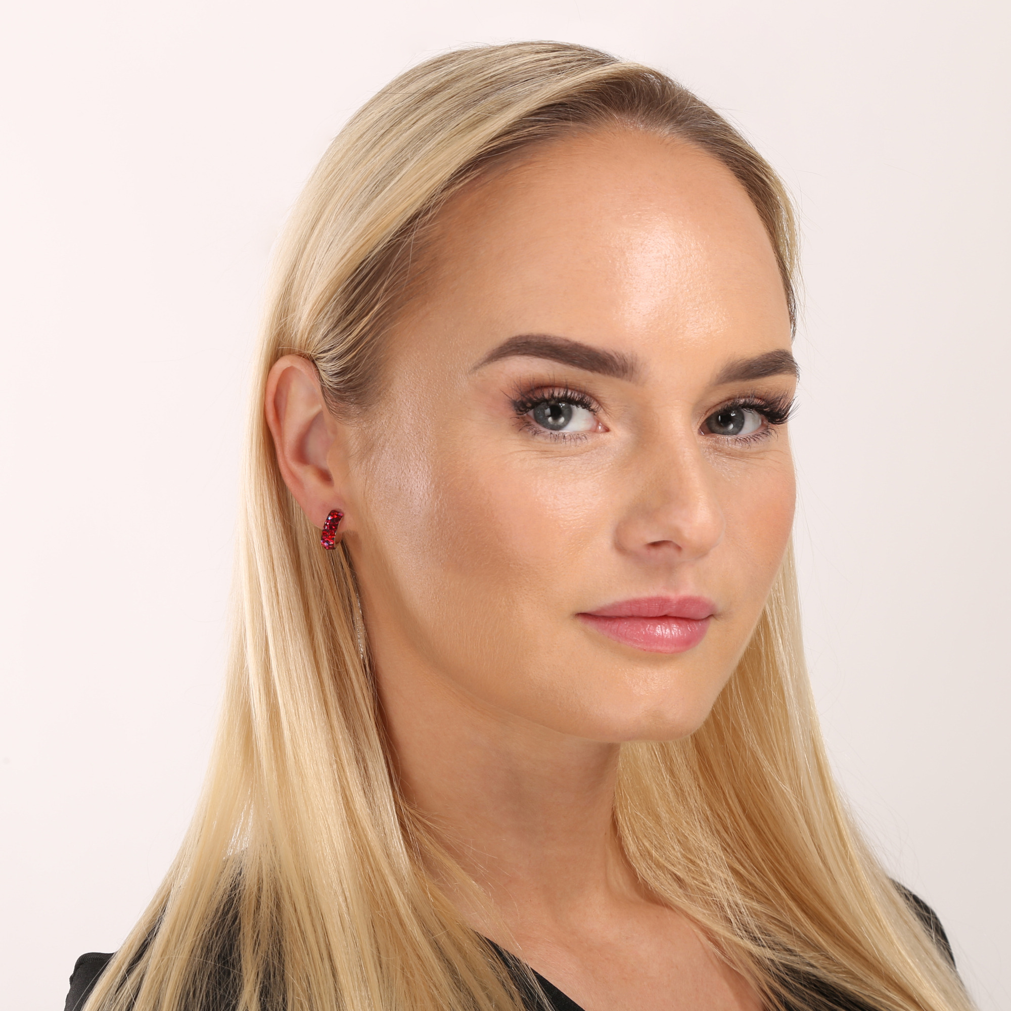 Stříbrné náušnice dekorované červenými kameny z dílny Crystals from Swarovski®