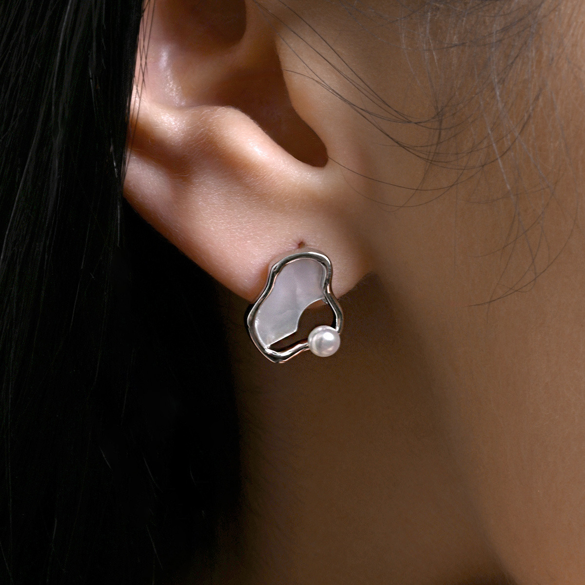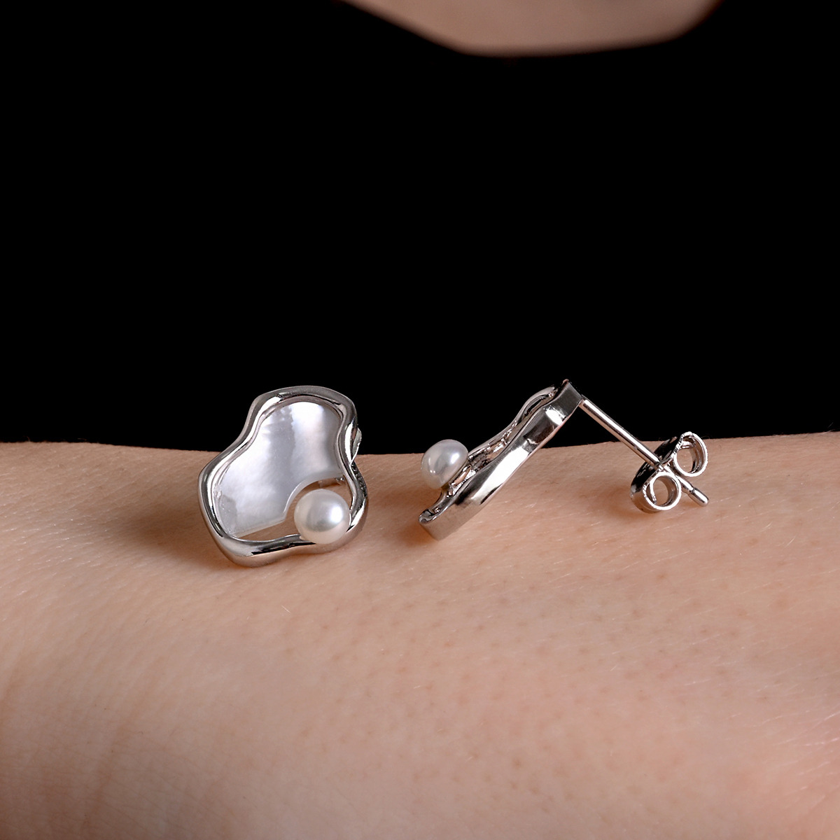 Náušnice s nepravidelným tvarem a pravou říční perlou přinášejí eleganci a originalitu. Každý kus je jedinečný díky přírodnímu materiálu.