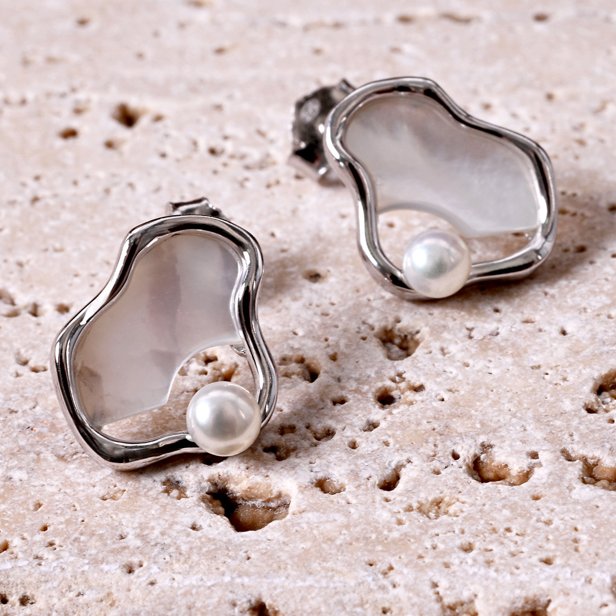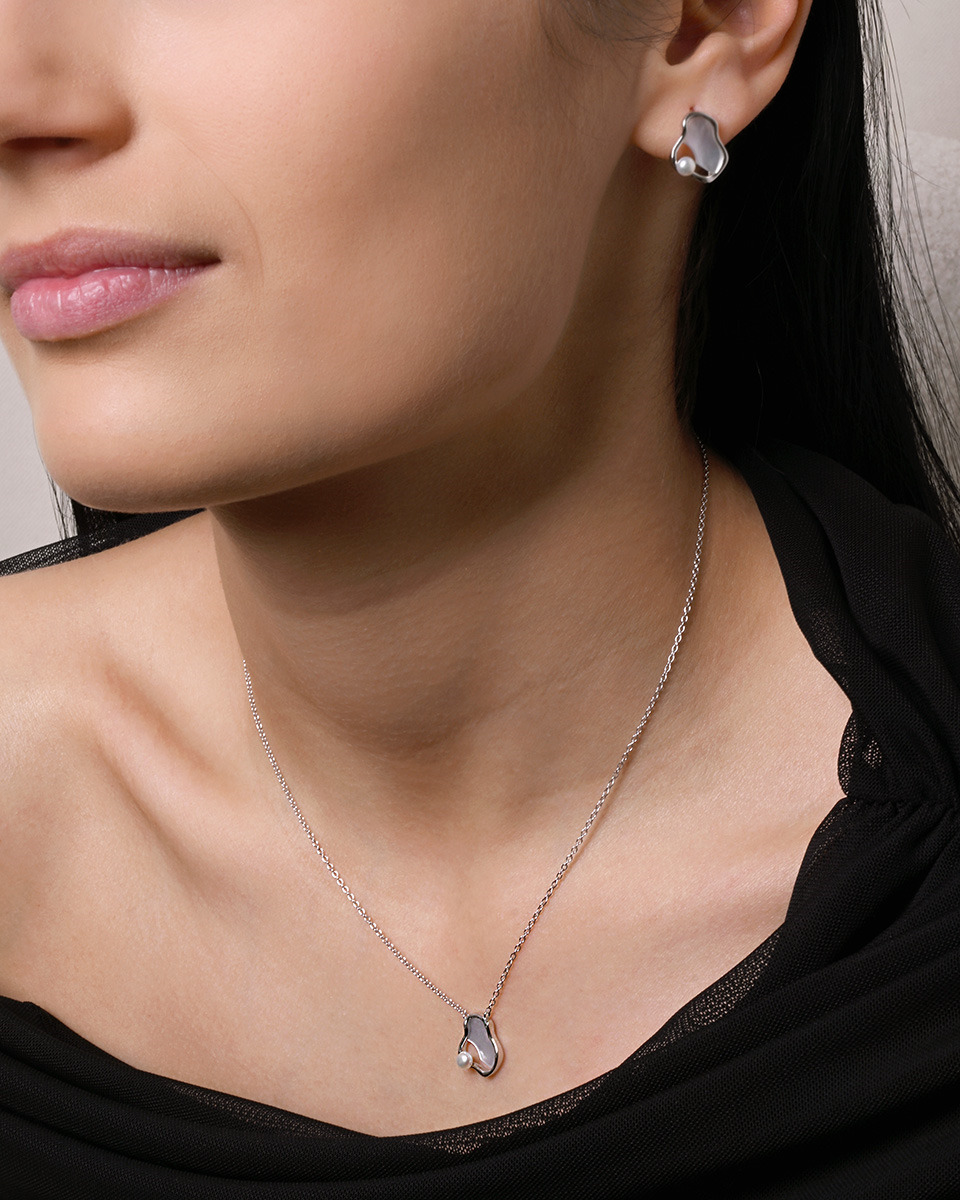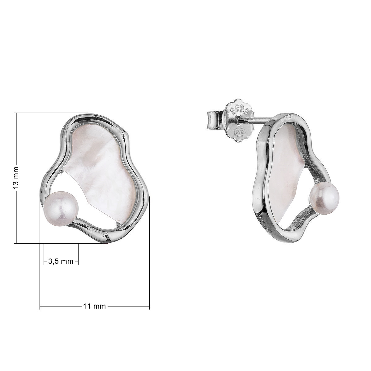 Stříbrné náušnice nepravidelného tvaru s říční perlou
