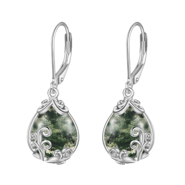 Visací náušnice ze stříbra s jakostním označením 925/1000 dekorované překrásnými přírodními kameny mechového achátu