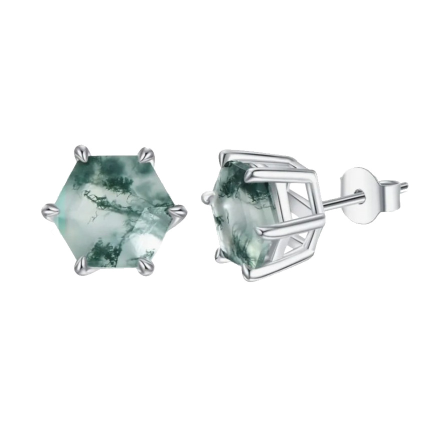 Dámské náušnice ze stříbra s jakostním označením 925/1000 dekorované překrásnými přírodními kameny mechový achát