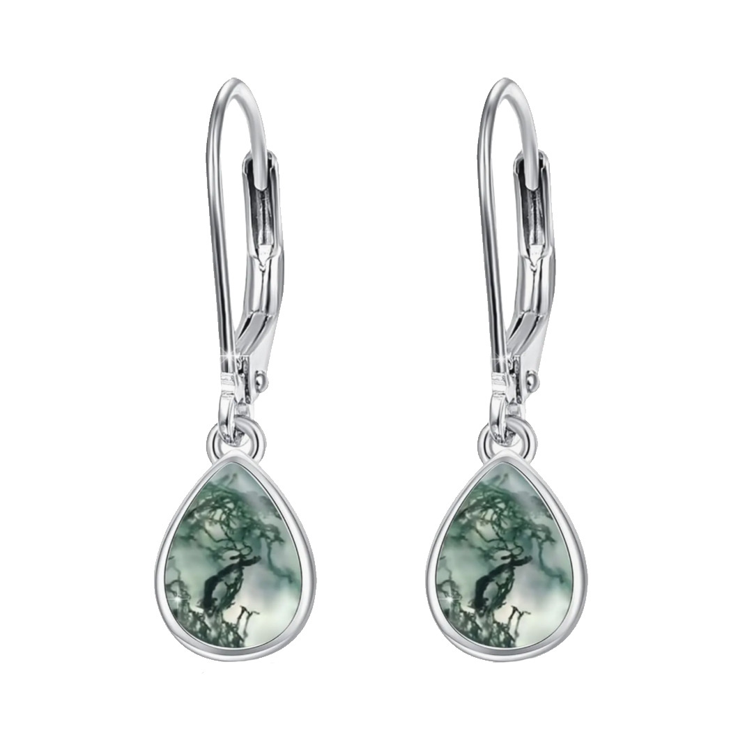 Visací náušnice ze stříbra s jakostním označením 925/1000 dekorované překrásnými přírodními kameny mechový achát