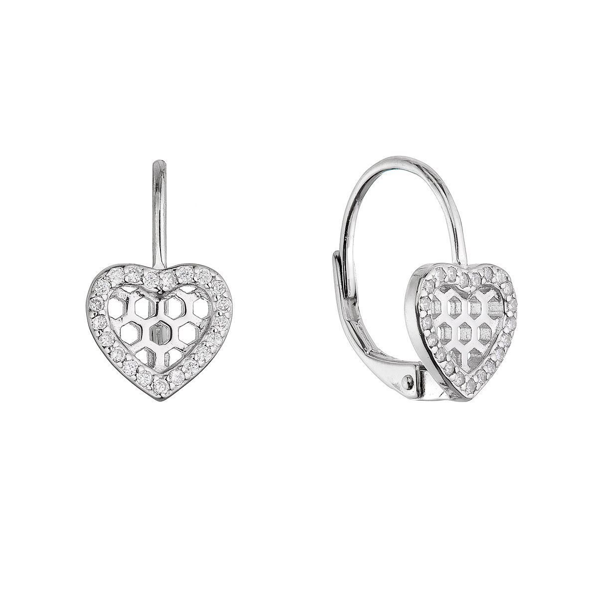 Láska na první pohled - přesně to jsou tyto okouzlující srdíčkové náušnice. Srdíčko se pyšní třpytivými zirkony v obrysu, které při každém pohybu rozehrají magickou hru světel, uvnitř srdíček jsou malé otvory, celkově tak náušnice působí jako jahůdky. Šperk je vyroben z prvotřídního stříbra ryzosti 925/1000 a potěší i dámy s citlivou pletí, jelikož neobsahuje nikl. Díky praktickému zapínání na klapku vám náušnice budou dělat radost od rána do večera. Jejich nadčasový design si zamilujete - skvěle doplní jak džíny a tričko. Přidejte do svého šperkovnice kousek, který vypráví příběh o lásce.
