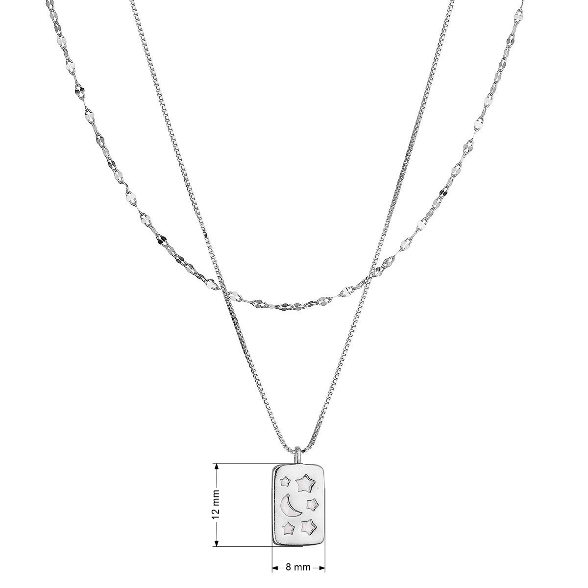 Stříbrný vrstvený náhrdelník je dokonalým spojením moderního stylu a jemné elegance. Dva dokonale sladěné řetízky tvoří jeden harmonický celek – robustnější řetízek s většími očky a jemnější varianta s okouzlujícím přívěskem ve tvaru obdélníku.