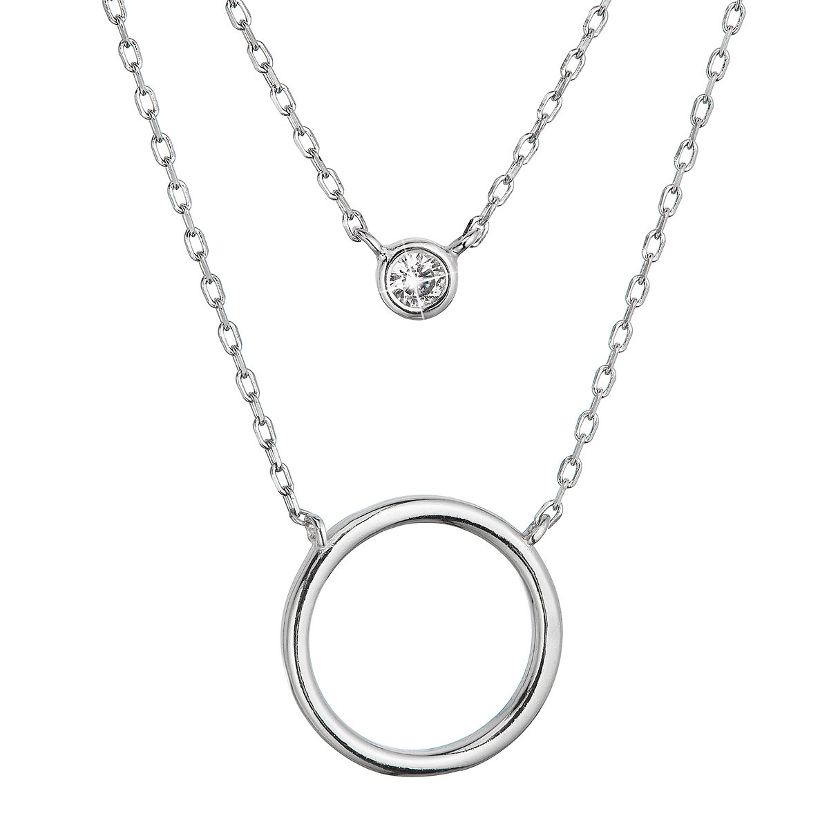 Stříbrný náhrdelník dvojitý řetízek kroužek a zirkon