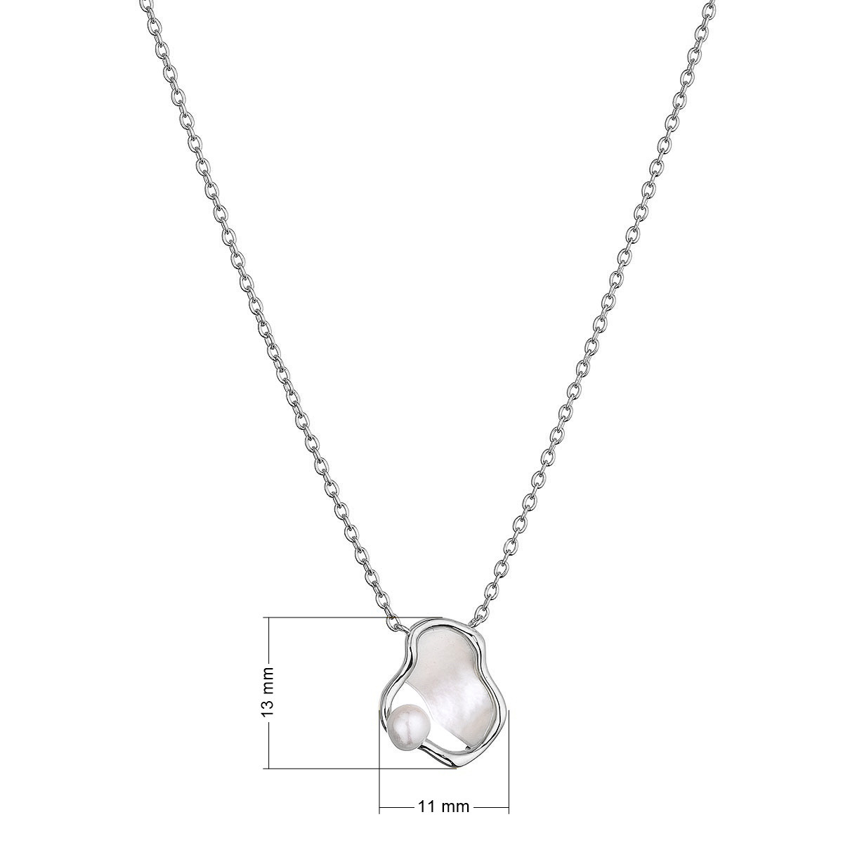 Náhrdelník je vyroben ze stříbra ryzosti 925/1000 s povrchovou úpravou rhodiem, což zajišťuje jeho odolnost a trvanlivost. Perla o průměru 3,5-4 mm má kvalitu AA, což zaručuje její krásný lesk.