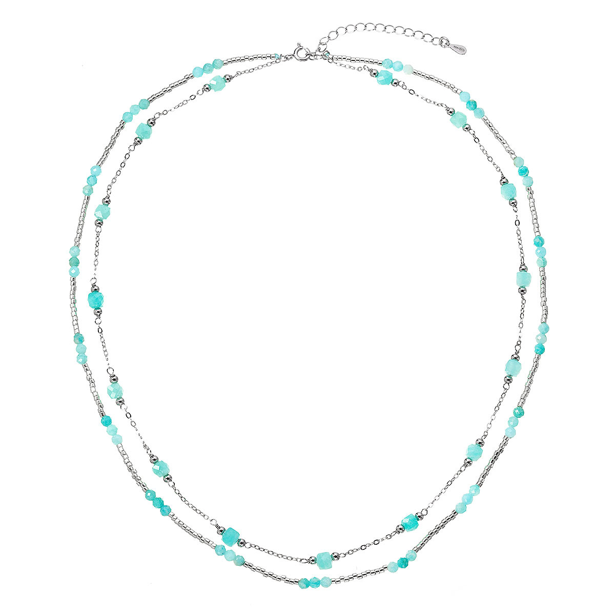 Okouzlující jemný dvouřadý náhrdelník s drobnými přírodními kamínky amazonity působí lehce a elegantně.