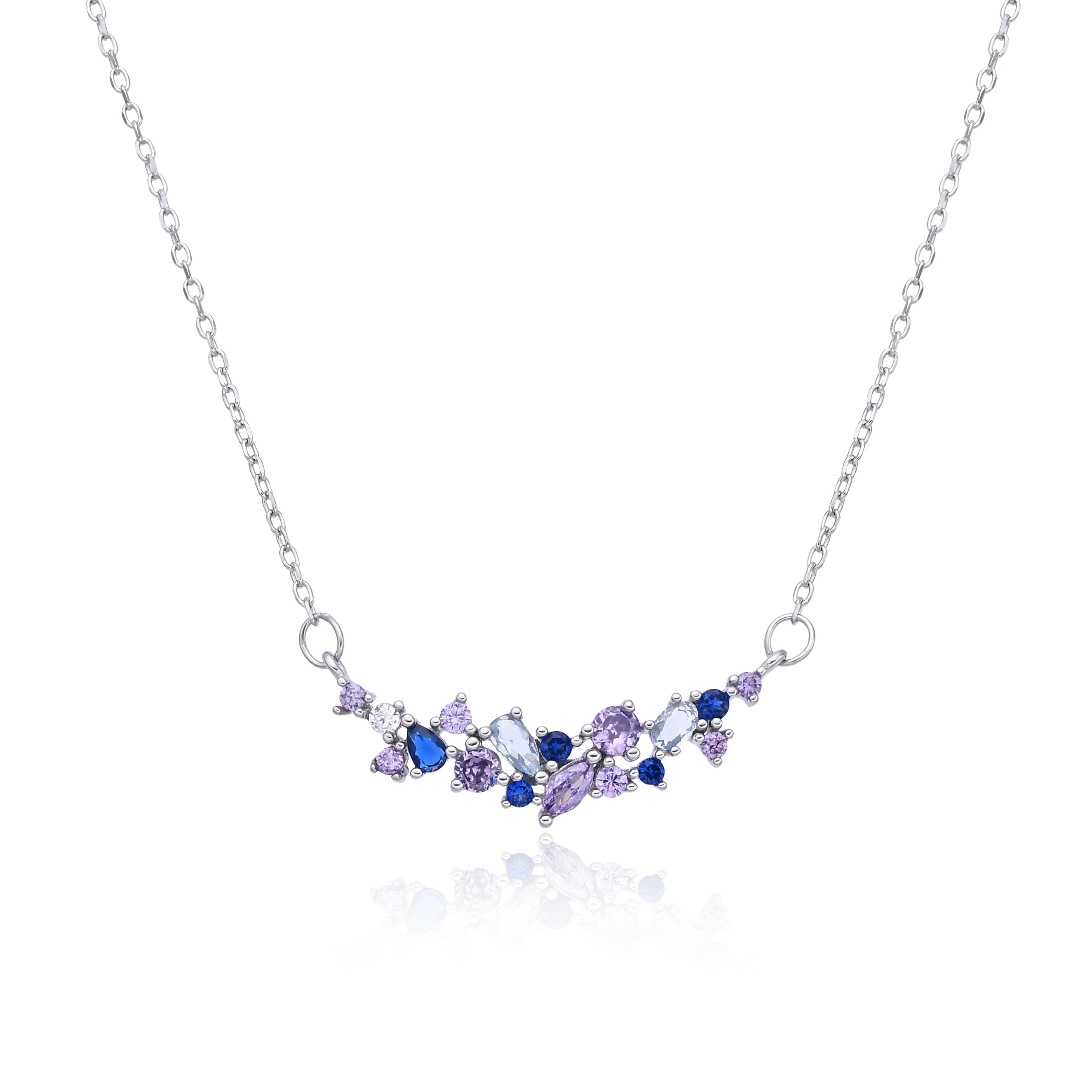 Stříbrný náhrdelník s přívěškem zdobeným zirkony modré a fialové barvy
