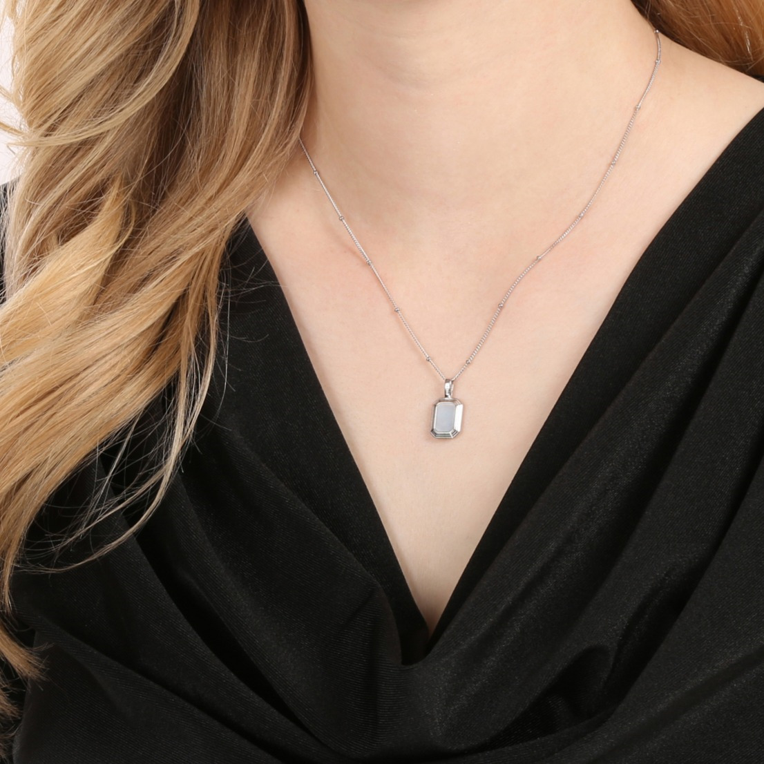 Stříbrný náhrdelník s perletí a černým achátem nabízí jedinečný oboustranný design, který vám umožní měnit vzhled šperku podle nálady či příležitosti. Na jedné straně se nachází nádherná syntetická bílá perleť, která dodává šperku jemný lesk a sofistikovanost, zatímco druhá strana ukrývá fascinující syntetický černý achát, jenž přináší tajemnou a elegantní eleganci.