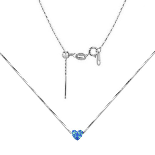 Stříbrný řetízek dekorovaný modrým srdíčkem ze syntetického opálu.