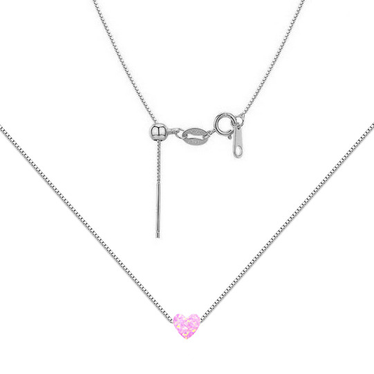 Stříbrný řetízek dekorovaný světle růžovým srdíčkem ze syntetického opálu.