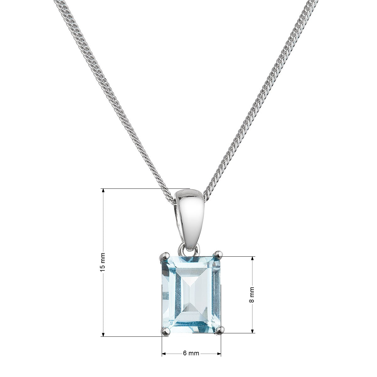 Stříbrný náhrdelník má vsazený velký obdelníkový topaz a je vyrobený z kvalitního stříbra ryzosti 925/1000. Stříbro obsahuje vrstvu rhodia, která ho chrání proti zčernání, žloutnutí i poškrábání. Jelikož šperk neobsahuje přídavek niklu, mohou se jím ozdobit i ženy, které jsou náchylné k alergické reakci.