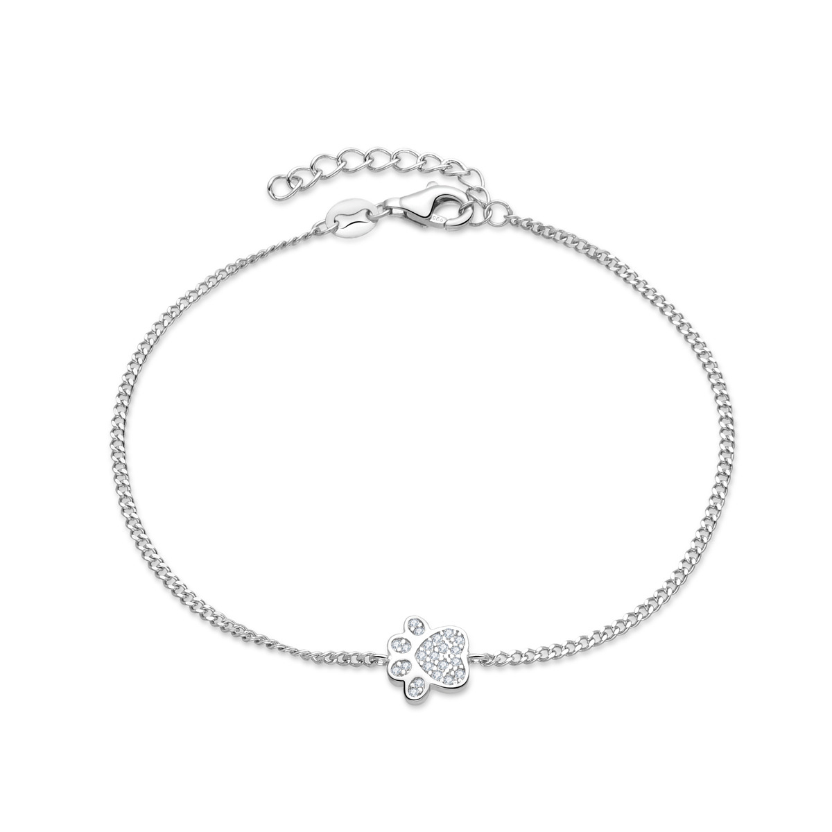 Dámský stříbrný náramek dekorovaný přívěskem ve tvaru psí tlapičky zdobené zirkony